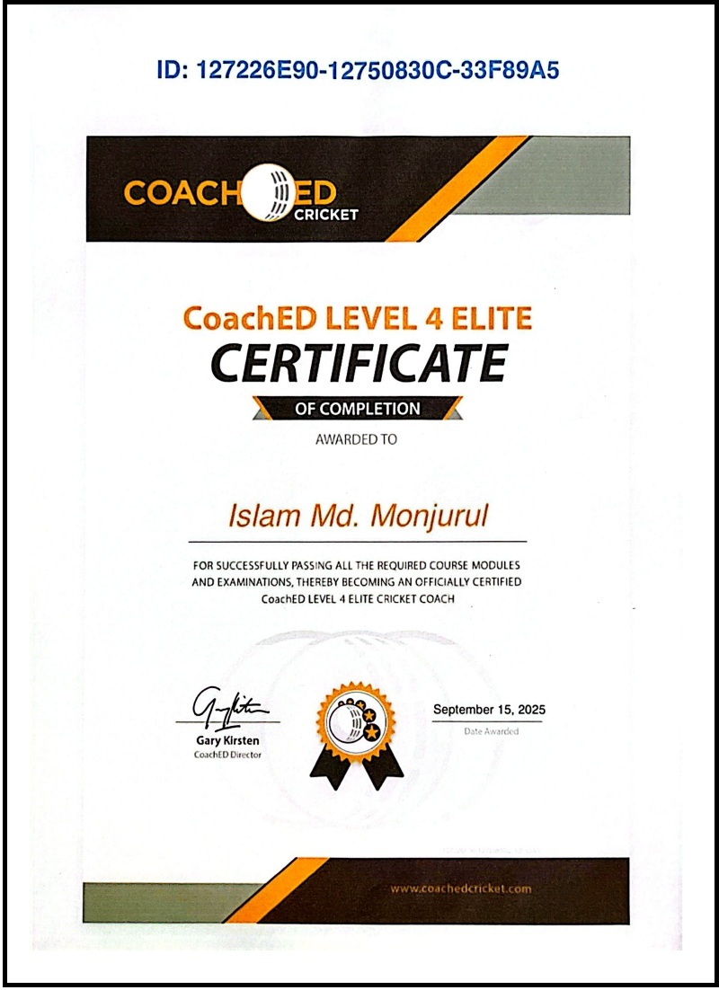 Former Bangladesh international cricketer and elite high-performance cricket coach with extensive experience leading national teams and developing players at the international level.